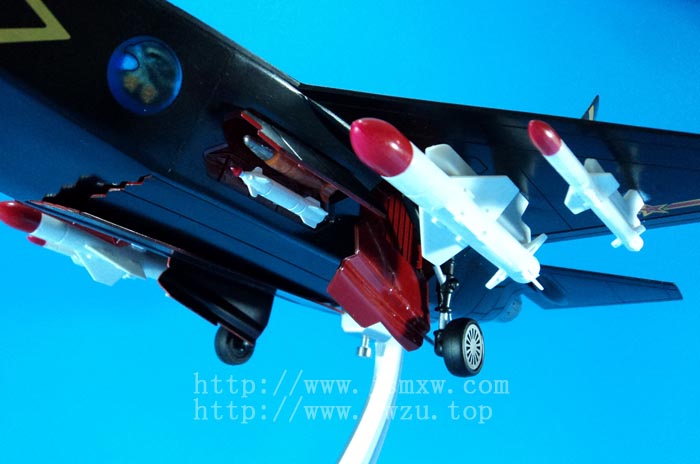 该模型为合金制作歼31战斗机仿真模型,比例为1:36,全长45.5cm,重量3.2kg,可以摆放在桌面等地方及使用支架摆放。飞机模型的驾驶员舱门盖可打开及关闭,尾翼、升降舵、垂直尾翼均可仿真动作,导弹仓门可打开及关闭。