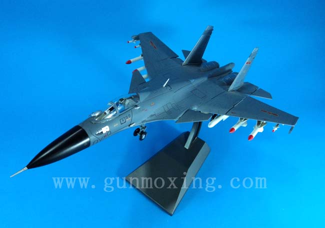 苏-33舰载机模型是按照苏33舰载机原型缩小比例制造,比例为1:48,长度为46厘米,材料为锌合金。此飞机模型驾驶仓盖可打开,升降舵及尾舵可转动,前鸭翼可转动,前后机翼可折叠。飞机即可放在支架上展示,也可将飞机拿下单独摆放。